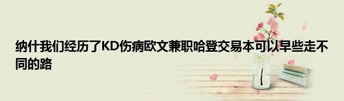 談到本賽季的經(jīng)歷,納什說道:“我們?cè)谶@里戰(zhàn)斗是為了團(tuán)結(jié)在一起,我為這個(gè)團(tuán)隊(duì)感到驕傲,但我們本可以在賽季早些時(shí)候就走一條不同的路。我們經(jīng)歷了杜蘭特的傷病,歐文不能出戰(zhàn)主場(chǎng)以及哈登的交易風(fēng)波。場(chǎng)內(nèi)外的事務(wù)都對(duì)我們有有影響,太多事情影響了我們的連續(xù)性。”