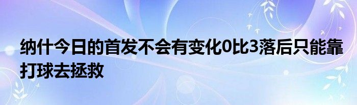 談到籃網會以何種心態應對0比3落后的情況,納什說道:“處于我們現在的位置,球員們不會指望誰用言語來拯救他們。他們會拿起球,然后起身走上賽場,開始比賽。按照我們自己的方式去打球,然后努力改善我們做得不好、低效的那部分。”