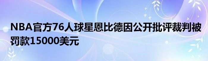 4月26日訊今日,NBA官方宣布,76人球星恩比德因公開批評裁判被罰款15000美元。