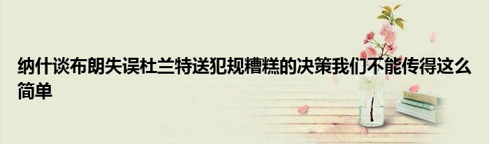 賽后,籃網主帥納什在接受采訪時談到了這個回合。他說:“糟糕的決策。我們不能這樣缺乏溝通地、簡單地傳球,否則對手就會直接打反擊。”