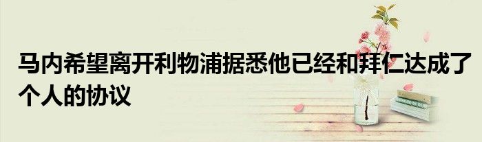 馬內希望離開利物浦,據悉他已經和拜仁達成了個人的協議,但拜仁還未能與利物浦達成協議。