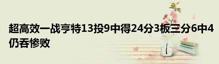 雖然輸掉了比賽,但亨特在本場比賽中的發揮仍然非常高效,全場他出戰了31分鐘,13投9中,三分6中4,罰球4中2得到了24分3板1助。