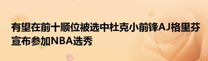 4月25日訊 杜克大學(xué)大一小前鋒AJ-格里芬宣布,將參加今年的NBA選秀。