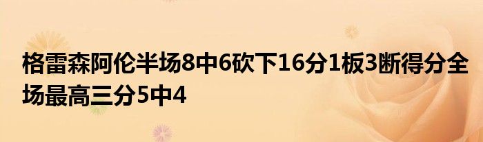 格雷森-阿倫半場出戰14分32秒,8投6中,三分5中4,得到全場最高的16分,外加1籃板3搶斷。
