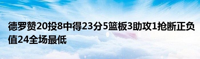 此役,德羅贊出戰40分鐘,20投8中,三分5投0中,罰球8罰7中,得到23分5籃板3助攻1搶斷的數據,正負值-24全場最低。