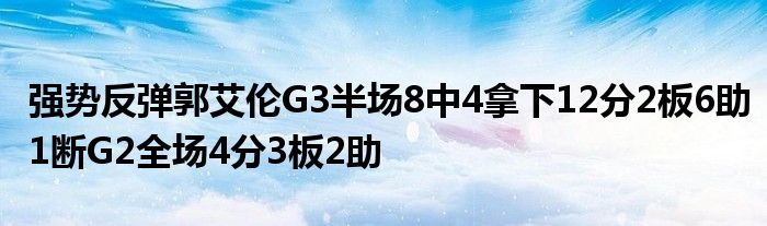 值得一提的是,郭艾倫在G2僅得到4分3籃板2助攻。