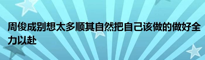 當談到自己總決賽的三分球命中率是百分百時,周俊成說:“我覺得還是不要想數據這個東西,不要想太多,就是順其自然。在場上全力去拼,是我的機會的話,我就去投,主要還是防守,把自己該做的做好。”