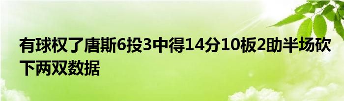 在上半場比拼中,唐斯相比于上一場獲得了較多的機會,他出戰20分鐘,6投3中,三分2中1,罰球8中7得到14分10板2助的兩雙數據,但也出現了5次失誤。