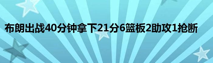 本場比賽,布朗出戰(zhàn)40分鐘,投籃19中9,三分6中2,罰球2中1,拿下21分6籃板2助攻1搶斷。