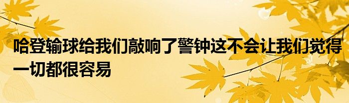 談到大比分被扳成3-1,哈登表示:“輸球?qū)ξ覀儊?lái)說(shuō)是件好事,這給我們敲響了警鐘,我們覺(jué)得一切都很美好,我們以為事情很容易,但不是這樣的。這場(chǎng)失利無(wú)關(guān)于任何人,而是關(guān)于我們自己。”