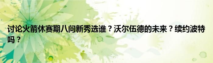 問題4:火箭應該給小凱文-波特和泰特開多大的合同?今年夏天就該與他們談續(xù)約嗎?