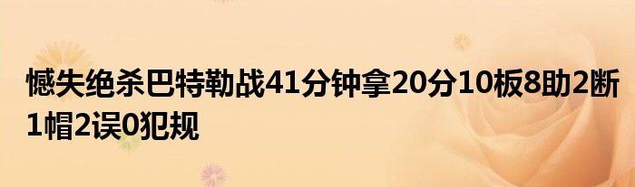 本場,巴特勒出戰41分鐘,投籃20中8,三分3中1,罰球2中2,拿到20分10籃板8助攻2搶斷1蓋帽2失誤0犯規。