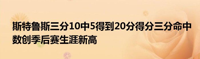 全場比賽,斯特魯斯出戰29分04秒,投籃13中7,三分10中5,罰球3中1,得到20分1籃板1助攻,正負值+14。此役,斯特魯斯的得分和三分命中數均創個人季后賽生涯新高。