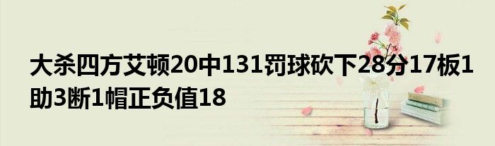28分是艾頓生涯季后賽的單場得分新高,他今日的得分全部來自前三節,末節他2投0中,摘下6個籃板。