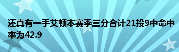據統計,本賽季艾頓總計在三分線外是21投9中,其中在常規賽,他三分19投7中,在季后賽三場比賽里他2投2中。