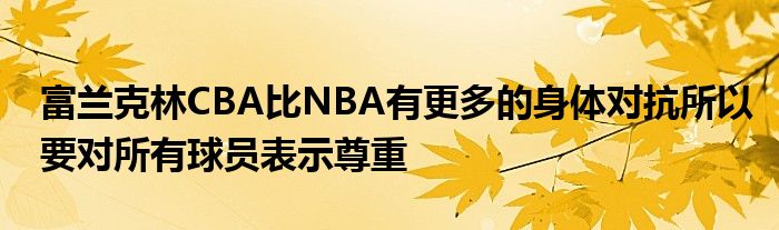 富蘭克林在個人微博中寫道:“正在看NBA季后賽,同時也在CBA效力的我會說,CBA比NBA有更多的身體對抗,所以要對所有聯(lián)盟中的本土球員以及外援表示尊重。”