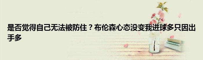 布倫森:我的心態(tài)仍然是一樣的,我對(duì)待比賽的方式?jīng)]有變。對(duì)我來說,沒有什么東西改變了,我進(jìn)球更多了,當(dāng)然那是因?yàn)槲页鍪指唷5俏以诰裆蠜]有什么改變,心態(tài)還是一樣,什么都沒改變。