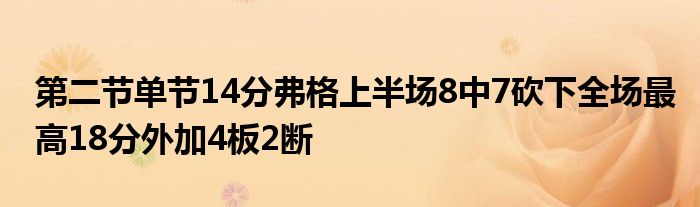 值得一提的是,第二節比賽弗格投籃6中6,三分1中1,罰球1中1,單節便砍下14分,助遼寧打出27-13的單節比分,一舉反超并拉開分差。