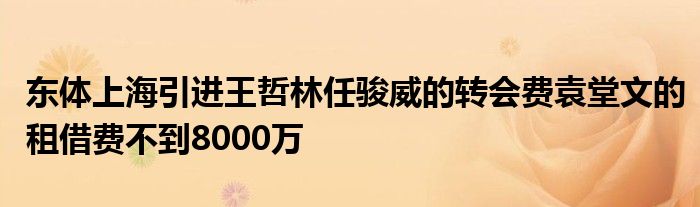 4月22日訊 據(jù)《東方體育日?qǐng)?bào)》記者薛思佳透露,上海男籃去年引進(jìn)王哲林、任駿威和袁堂文的費(fèi)用總和不到8000萬(wàn)。