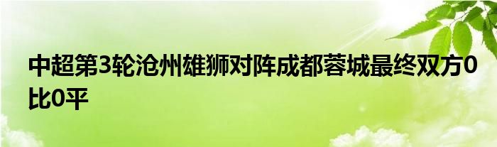 北京時間6月12日19:30,中超第3輪,滄州雄獅對陣成都蓉城。最終雙方0-0平。