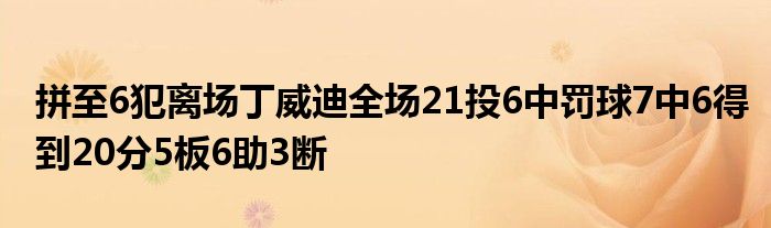 本場比賽,獨行俠球員丁威迪首發出場40分46秒,21投6中,三分7中2、罰球7中6,得到20分5籃板6助攻3搶斷。在末節最后時刻,丁威迪防守康利犯規,6犯離場。