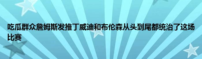 賽后湖人球員詹姆斯發推點評了本場比賽,他寫道:“丁威迪和布倫森從頭到尾都統治了這場比賽,重要勝利!”