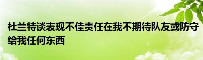 談到今天自己表現不佳,杜蘭特表示:“結束這種表現的責任在我,我得解決這個問題。我不期待隊友或者防守給我任何東西,我只是得努力上場打球?!?/p>