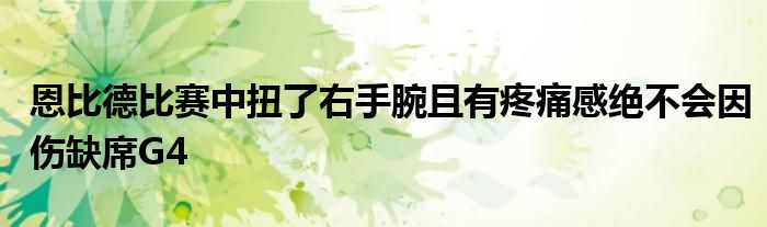 恩比德接受媒體采訪時右手腕裹著繃帶,當被問及是否受傷時,恩比德表示:“我不知道到底發生了什么,但我在賽后開始感到疼痛,我想我可能扭了一下,我會看看明天的感覺怎么樣。”
