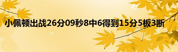 此役,小佩頓出戰26分09秒,8中6得到15分5板3斷。