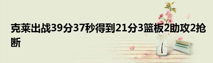 此役,克萊出戰(zhàn)39分37秒,投籃14中7,其中三分球11中5,罰球2中2,得到21分3籃板2助攻2搶斷。