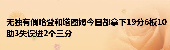值得一提的是,哈登和塔圖姆本場多項數據一模一樣,兩人都是拿下19分6籃板10助攻,投進2個三分球且出現3次失誤。