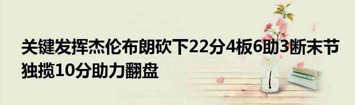 全場比賽,杰倫出場39分20秒18投9中,三分6中2、罰球3中2,攻下22分4籃板6助攻3搶斷,得分全隊最高。