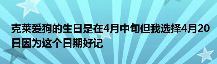 談到他的愛狗Rocco時,克萊說Rocco的生日是在4月中旬的某一天,但他選擇了4月20日,因?yàn)檫@個日期好記。