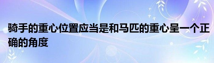 騎手必須要在任何的情況之下,確認(rèn)自己的重心中心點(diǎn)是和馬匹的重心中心點(diǎn)相一致的。要讓馬感覺(jué)騎手是輕而舒適的負(fù)載在牠身上。騎手的困難點(diǎn)是:必須隨時(shí)在馬匹平衡的不斷變換下做出的調(diào)整。