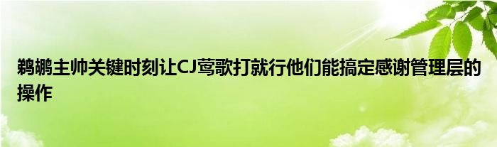 談到本場比賽CJ和英格拉姆的表現,威利-格林謙虛地說道:“光是看英格拉姆表演就可以了,我不用再指揮球員,讓他來掌控就行。比賽關鍵時刻,只要將球交給英格拉姆和CJ,他們就能搞定比賽。”
