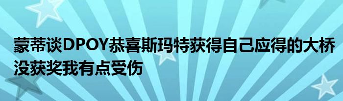 談到布里奇斯在最佳防守球員投票中排第二時,蒙蒂說道:“首先要恭喜斯瑪特,他一直以來都是個出色的防守者,終于獲得了自己應得的。與此同時,布里奇斯沒能獲獎我有點受傷,但是同樣很高興他能排第二。”