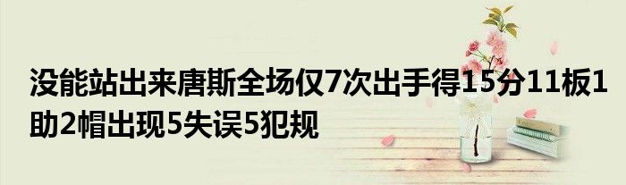 此役,森林狼球星唐斯出戰28分鐘,7投4中,罰球8中7,得到15分11籃板1助攻2蓋帽,并出現5次失誤與5次犯規!