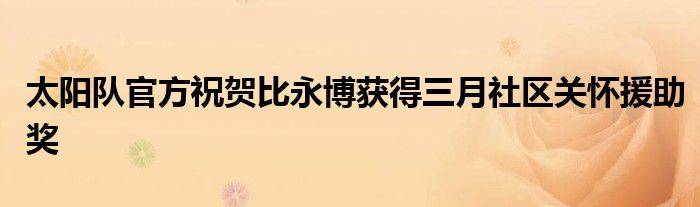 4月20日訊 今日太陽隊官方祝賀比永博獲得三月份的社區關懷援助獎。