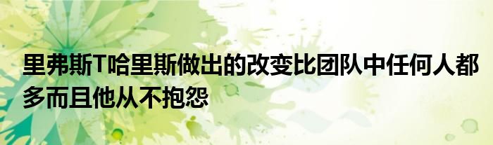 談到T-哈里斯本場比賽表現,里弗斯表示:“他為球隊付出了一切,哈里斯做出的改變比我們團隊中的任何人都多,而且他一直在這樣做,沒有任何抱怨。”