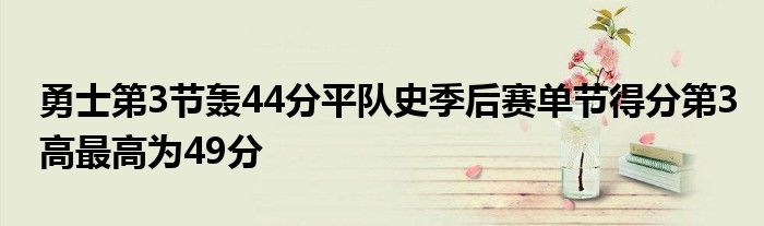 據(jù)統(tǒng)計(jì),44分是勇士隊(duì)史季后賽單節(jié)的并列第3高得分。另外有3場(chǎng)比賽勇士的單節(jié)得分等于或大于44分,分別是:
