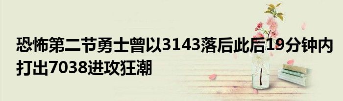 本場第二節(jié)剩7分23秒時,勇士以31-43落后。而此后到第三節(jié)結(jié)束的19分鐘內(nèi),勇士打了一波70-38的進攻狂潮!一舉反超比分并建立起20分領(lǐng)先優(yōu)勢!