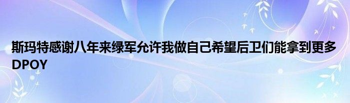 最后他談到自己作為一個后衛拿到DPOY的意義。他說:“這說明后衛也能拿到DPOY。比賽的方式正在發生變化,后衛們的能力得到了更多的認可,我們做到了一些以我們的能力和體型本做不到的事情。我的獲獎為后衛們開辟了道路。”
