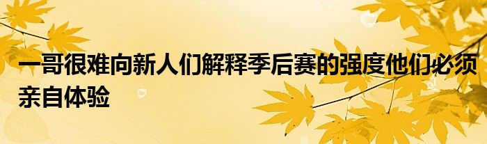 賽前談到球隊有許多季后賽菜鳥,一哥表示:“他們必須親身感受。很難向他們解釋,季后賽的強度是如何驟然提升的。”