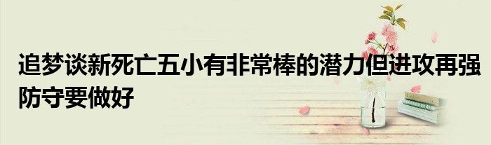 談到昨日的新“死亡五小”陣容,追夢說道:“我認為這個陣容很有潛力,昨天我們只一起打了5分鐘。關于這個陣容令人興奮的點在于,里面有組織者,有得分手,有射手,有能防守的球員,這是很好的搭配。我們能給對面帶來一些麻煩,而且大部分時間防守端都做得不錯。”