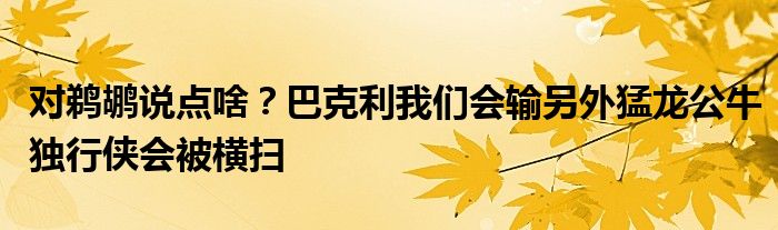 當被問到假如自己是鵜鶘主帥會對隊員說些什么時,巴克利說道:“我們會輸掉比賽。”
