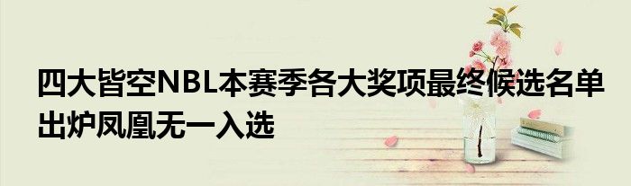 4月21日訊 今日,NBL聯賽本賽季各大獎項最終候選名單出爐,周琦所在的鳳凰隊無一提名。