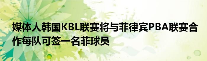4月18日訊 據媒體人@智商越來越低的unicornxp報道,韓國KBL聯賽將與菲律賓PBA聯賽展開合作。