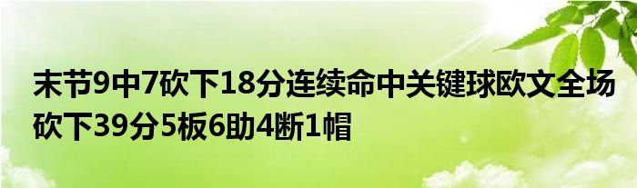 末節歐文9投7中得到18分2籃板2助攻,幫助球隊一度逆轉了比分,最后更是連續命中關鍵球,但遺憾被塔圖姆壓哨絕殺,沒能帶隊取勝。