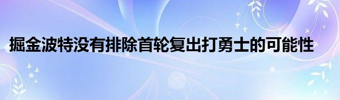 4月18日訊 掘金隊球員小邁克爾-波特在昨日季后賽首輪G1,掘金不敵勇士的賽后接受采訪時表示,自己沒有排除首輪復出打勇士的可能性。