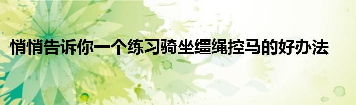 今天要悄悄告訴你一個練習騎坐韁繩控馬的好辦法, 不需要騎在馬上呦!是不是很想知道?